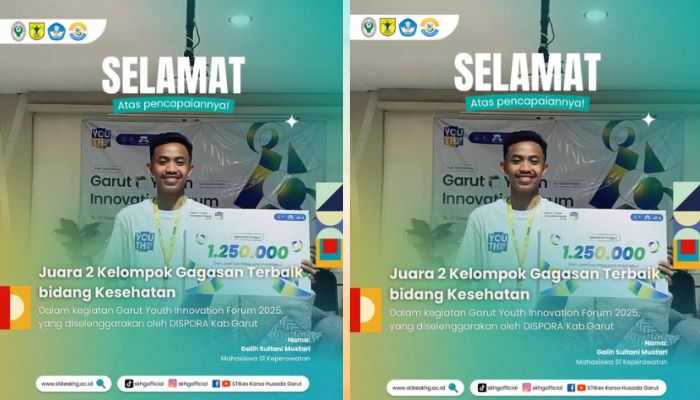 WARTAGARUT.COM – Mahasiswa Program Studi S1 Keperawatan STIKes Karsa Husada Garut, Galih Sultani, berhasil mengharumkan nama institusinya setelah meraih Juara 2 Kelompok Gagasan Terbaik Bidang Kesehatan dalam ajang Garut Youth Innovation Forum (GYIF) 2025, sebagai bentuk kontribusi nyata generasi muda dalam menghadirkan solusi inovatif di sektor kesehatan.