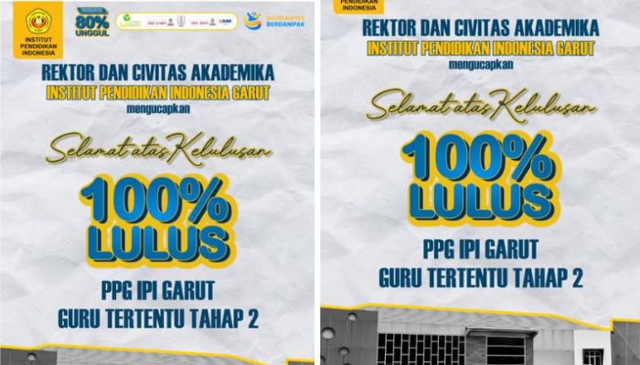WARTAGARUT.COM – Kabar membanggakan datang dari Institut Pendidikan Indonesia (IPI) Garut. Seluruh peserta Program Pendidikan Profesi Guru (PPG) Tahap 2 Tahun 2025 berhasil lulus 100 persen, menjadikan kampus ini sebagai salah satu lembaga pendidikan tinggi dengan tingkat kelulusan tertinggi di Indonesia.